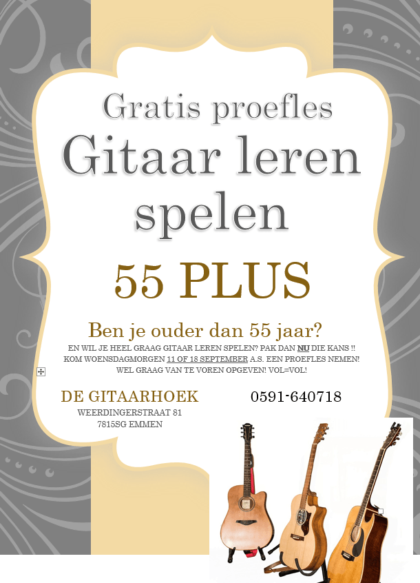 Ben jij 55 plus? en heb je altijd al willen gitaar leren spelen, maar weet je niet of het nog wat voor je is?