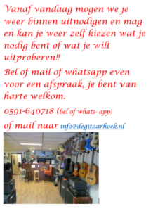 nieuws Ophalen van je muziek producten Natuurlijk zijn wij er voor jou, zodat jij gewoon gitaar kunt (blijven) spelen. je besteld dat wat je nodig bent per telefoon / whats app Read More » 5 februari 2021 Geen reacties